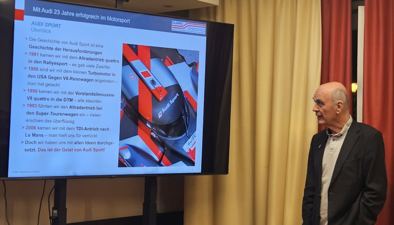 Dipl.-Ing. Dr.techn. Wolfgang Ullrich erzählte kurzweilig, interessant unglaublich sympathisch von seinem Werdegang, der ihn zu Audi Sport führte, wie er ebendort zum Direktor avancierte und seine erlebten Erfolge im Laufe von 25 Jahren bei Audi Sport, von Le Mans, der DTM und der WEC.